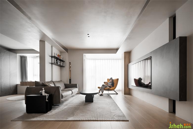 當(dāng)空間重組之后,除了空間更加開(kāi)闊之外,視覺(jué)上也大氣了很多。吊頂采用不銹鋼流線型設(shè)計(jì),間接拉伸了空間層高,也增加了柔軟度。家裝設(shè)計(jì)電視背景墻電視部分用黑色巖板做區(qū)分,后側(cè)用鏡面形成穿插結(jié)構(gòu),使整個(gè)背景富有層次感。
