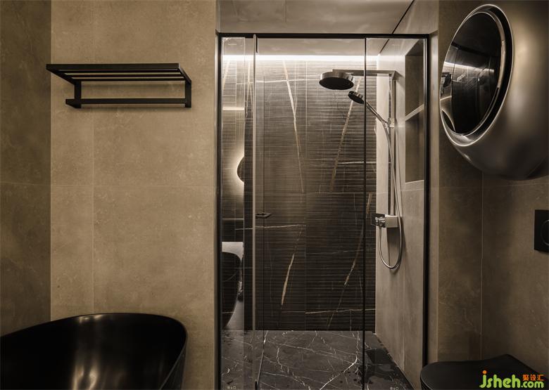 主衛(wèi)的朦朧感延伸到公衛(wèi),微黃的燈光,黑色系衛(wèi)浴,都讓腳步慢了下來。家裝設(shè)計(jì)深槽的設(shè)計(jì),避免水花飛濺,更易清理。掛壁式洗衣機(jī)也更便于清洗一些小衣物。主衛(wèi)設(shè)施一應(yīng)俱全,讓呆在衛(wèi)生間的時(shí)光仿佛都充滿了儀式感。