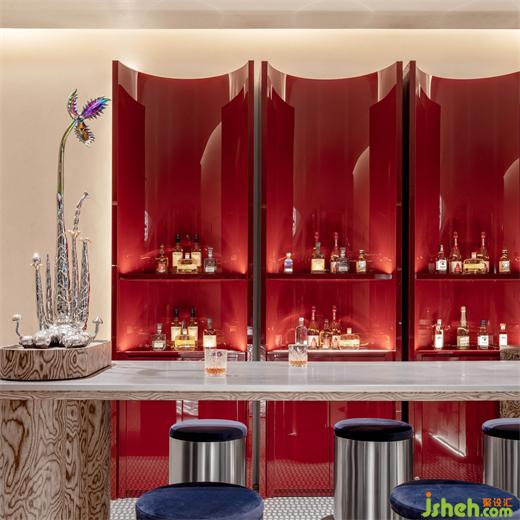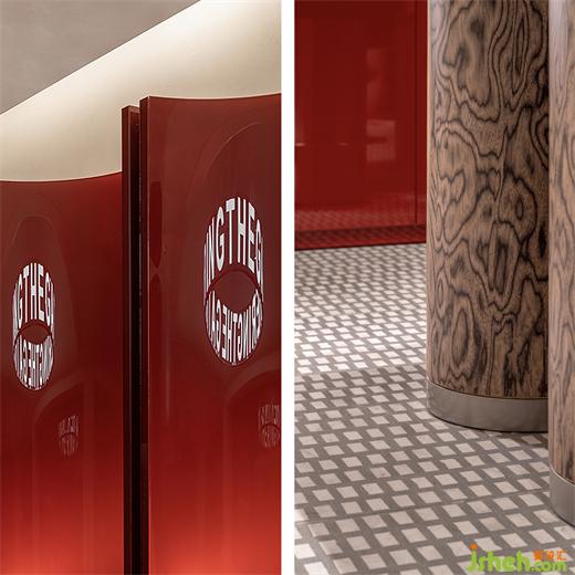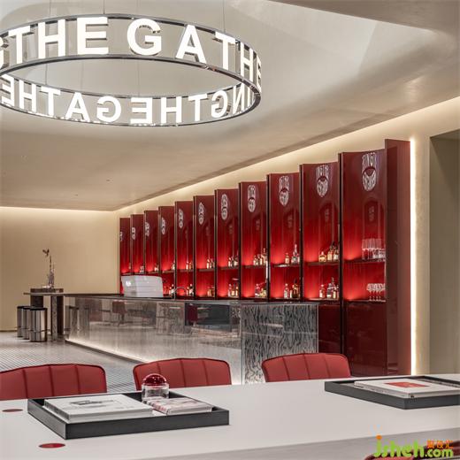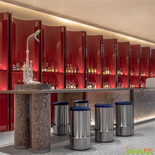 吧臺的木紋飾面被視為一種平面系統(tǒng),猶如咖啡與酒水的兩色交融,在視覺上與空間早C晚A的功能相呼應。吧凳的設計靈感來自于工業(yè)管道?!吨厣?永生花》裝置來自藝術(shù)家張藝法,隱喻著楊浦濱江從“工業(yè)銹帶”到“生活秀場”的更迭現(xiàn)象。