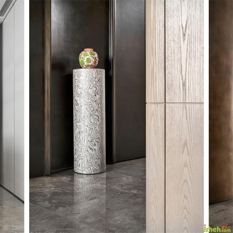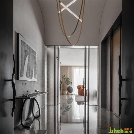 黑色雙門被開啟的瞬間,便仿若進(jìn)入了神秘主義的畫卷中——挑高的穹頂劃出一雙弧線,籠罩出玄關(guān)的所在,立體線條的長(zhǎng)案之上擺放著Michael Aram托盤和Klong Tender水滴燭臺(tái),自然元素、古老手作和時(shí)尚主義的細(xì)節(jié),私人別墅裝修設(shè)計(jì)透露著居家的品調(diào)。