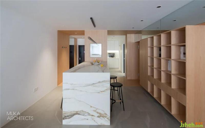 By placing maple boxes and partial mirror elements in the originaly monotonous living space, an efficient migration line and a modern living space with transparent order are formed.