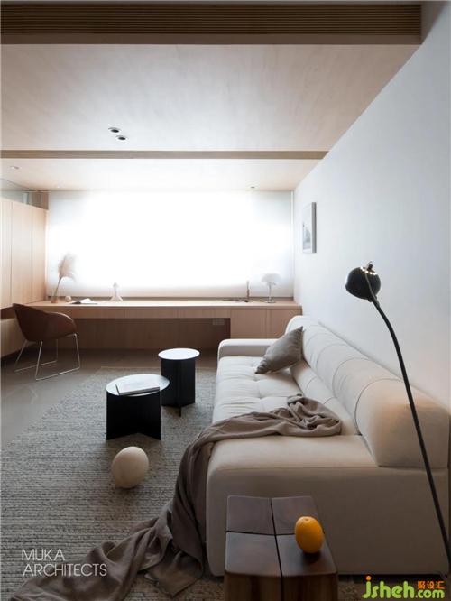 The soft furnishings are mainly light-weight furniture, which weakens the style and visual weight. The movable, round shape complements the tough spatial lines.