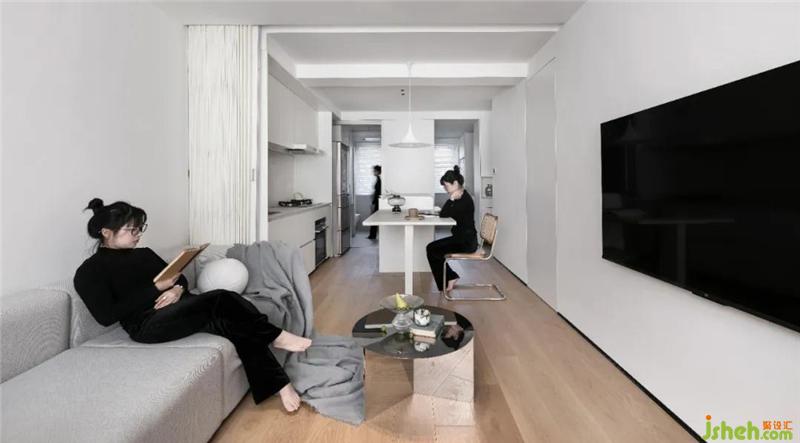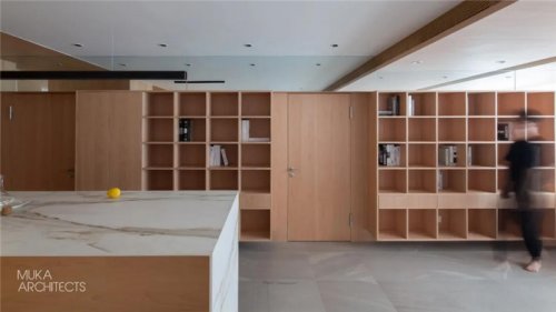 In the layout, the original kitchen area is liberated, and the living operation area is combined with three separate forms, which opens the north side while giving sufficient space for functions. The open kitchen in the living room is combined with the island dining table to take into account the migratory line operation.