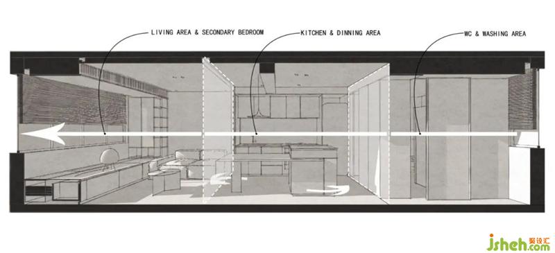 動(dòng)線一:疫情的原因逐漸已影響我們的生活方式,進(jìn)門可以先進(jìn)盥洗區(qū),清洗雙手,
