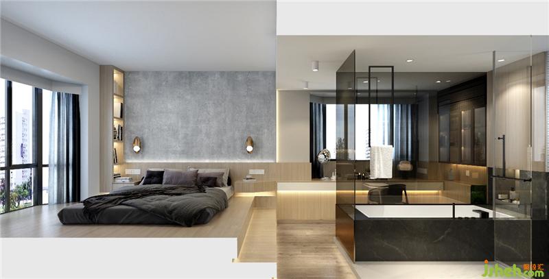 4、衛(wèi)生間的面積擴(kuò)大,為了滿足浴缸的排水要求,把衛(wèi)生間整體抬高,同時(shí)增加了燈光的設(shè)計(jì),讓衛(wèi)生間顯得輕盈。半通透的黑色玻璃,方便清潔的同時(shí),讓衛(wèi)生間增加了一絲神秘感和情趣。