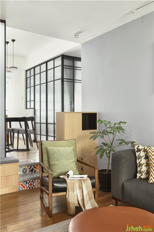 主要材料:KD免漆飾面板、紅棉花免漆板、二手柚木地板、木紋磚、長虹玻璃、黑色不銹鋼