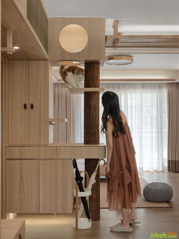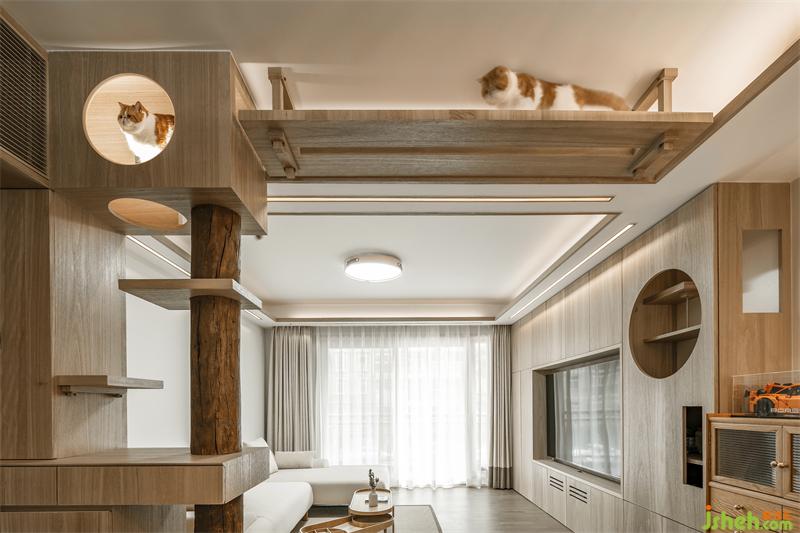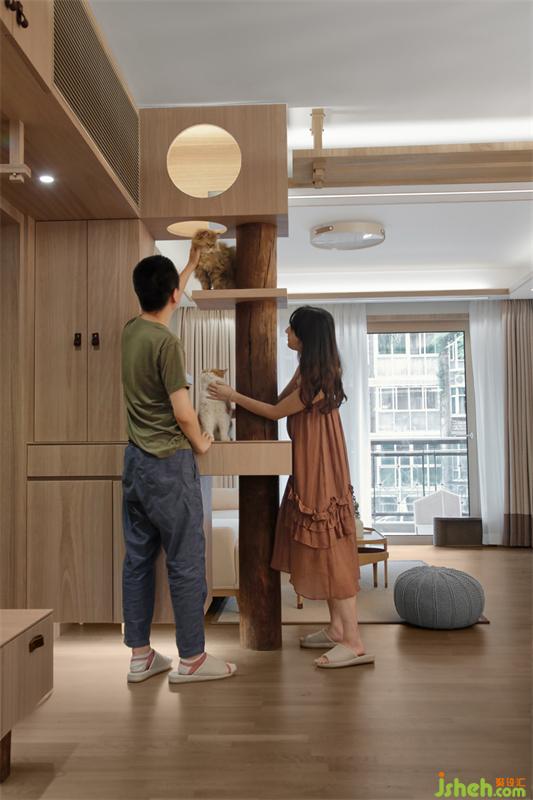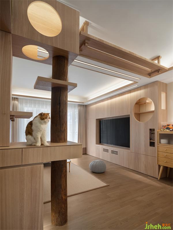 當(dāng)下養(yǎng)寵物的年輕人,已經(jīng)脫離了單純買貓別墅家具,而是在裝修的時候就從貓的生活習(xí)性去考慮「家」的動線規(guī)劃,業(yè)主希望貓咪在家不僅是寵物,同時還是平等的空間使用者,讓居所真正實現(xiàn)「人貓共樂」。因此,該案我們嘗試用貓的視角去審視,從空間功能的本質(zhì)出發(fā),去探討如何從尺度、光線、生活習(xí)慣去研究。