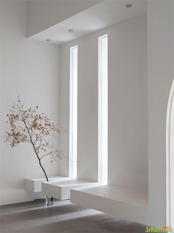 三個(gè)弧形的造型窗洞,整列式的排列,增加了儀式感。