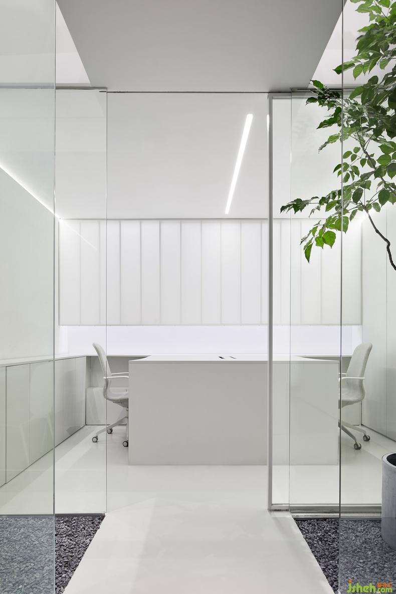 大量的通透、半通透的隔斷與花園相互交織,創(chuàng)造出更加曖昧柔和的空間邊界,辦公改造設(shè)計(jì)開放式茶水區(qū)與會(huì)議區(qū)被花園環(huán)繞,形成一個(gè)園中小島,可折疊玻璃隔斷為會(huì)議室提供了隱私性和靈活性。隱藏在花園盡頭的是相對(duì)私密的獨(dú)立辦公室,另外還有一些較為封閉的多功能小房間兼做模型室材料間,同時(shí)能夠?yàn)閱T工提供足夠安靜的專注工作環(huán)境。