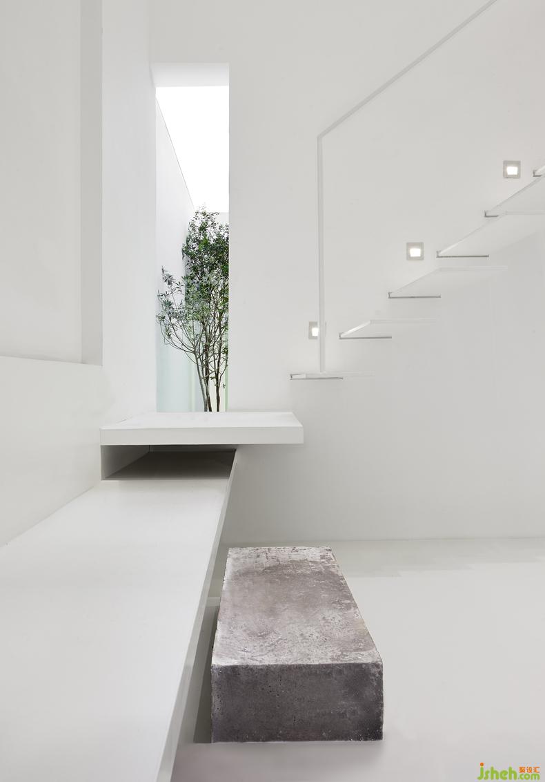 通往二層的樓梯輕薄而有力,二層辦公區(qū)與一層有“天井”相連,辦公室設(shè)計(jì)通過這部分灰空間感受原始的舊空間生長的植物貫穿上下,空氣在其縫隙中自由流通,空間模糊了室內(nèi)外,空間間隙處的景觀空間成為了原始空間的“意義上的外部”。