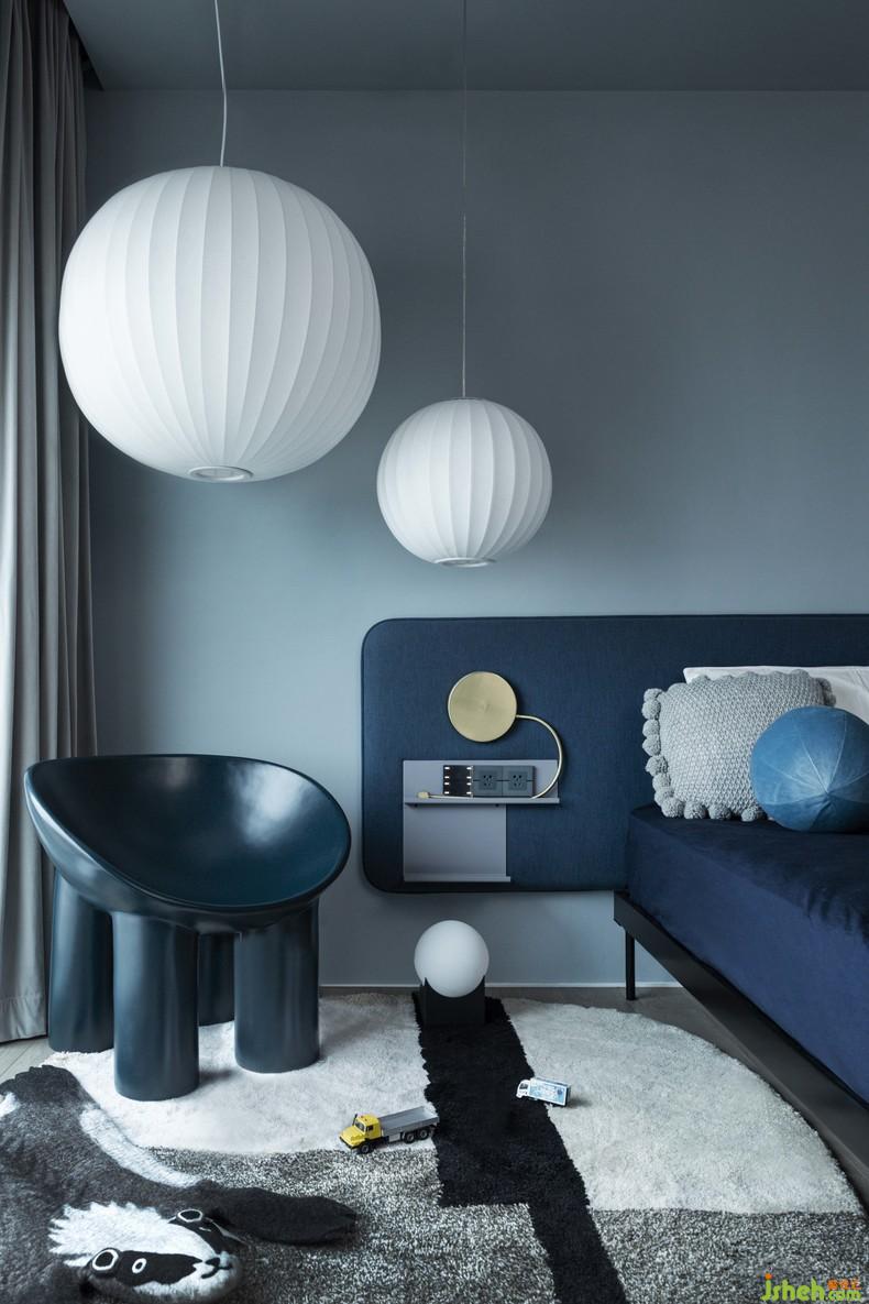 男孩房的設(shè)計(jì)注重其性別上的心理特征,滿(mǎn)足了男孩強(qiáng)烈的動(dòng)漫等英雄情結(jié),也體現(xiàn)出活潑、動(dòng)感的性格需求,設(shè)計(jì)師一方面考慮到安全性柔化了所有家具的邊角,另外將小男孩喜愛(ài)的玩具作為裝飾,大平層設(shè)計(jì)活躍空間氛圍。在兒童房的設(shè)計(jì)上,設(shè)計(jì)師認(rèn)為空間應(yīng)具備使用者的同步成長(zhǎng)性。因此摒棄目前各種具象生硬、過(guò)度裝飾、浮于表面且缺乏想象力的兒童空間設(shè)計(jì)手法,轉(zhuǎn)而從空間形態(tài)本身的趣味性出發(fā),大平層設(shè)計(jì)將整個(gè)空間本身打造成一個(gè)具有成長(zhǎng)性的空間,讓孩子毫無(wú)束縛地、自發(fā)地去探索、發(fā)掘和創(chuàng)造屬于自己的趣味空間。