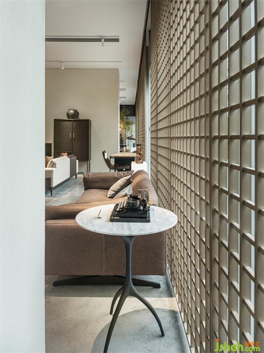 杭州總部展廳設(shè)計在造園手法中通常透過門洞、窗口而使被分隔的空間相互連通、滲透,而在商業(yè)空間中,我們嘗試采用格柵、墻體留白、軟性隔斷、通透分隔等方式來打造“流動空間”。