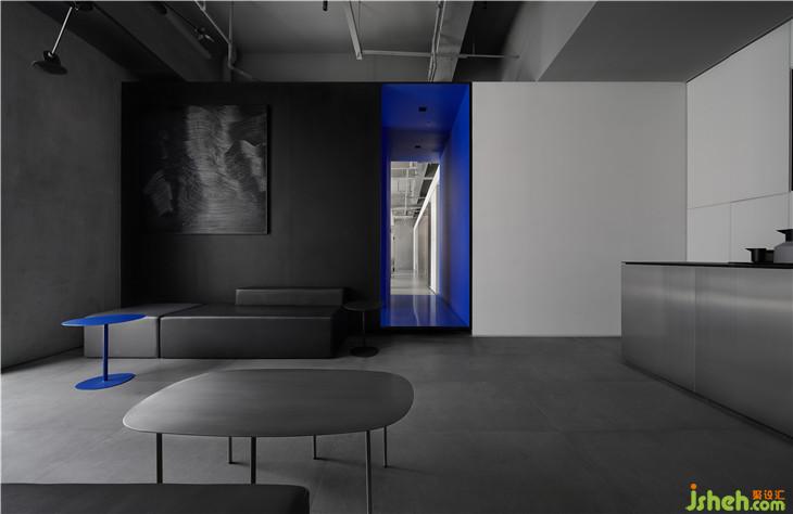 外立面采用粗獷的清水混泥土,不做冗長(zhǎng)的外在修飾,彰顯一種富有張力的空間美感;穿梭其間的那一抹藍(lán),明凈而空曠,無(wú)限延伸至虛無(wú),飽含頑強(qiáng)的藝術(shù)生命力。二者結(jié)合,一種特立獨(dú)行的距離感油然而生。