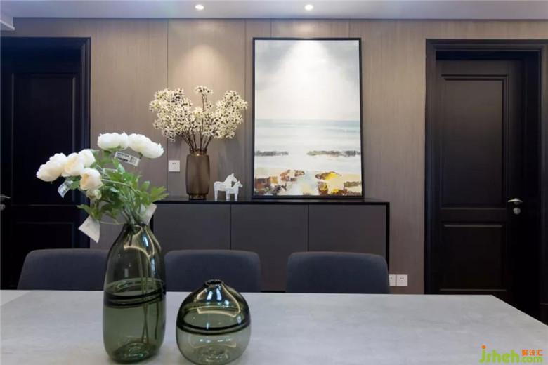 餐邊柜的兩邊是黑色的門,設(shè)計(jì)師選擇做了基層,再做了飾面板裝飾,如果是清水房,我們也會(huì)建議把整體的門加高,呈現(xiàn)更好的空間感。