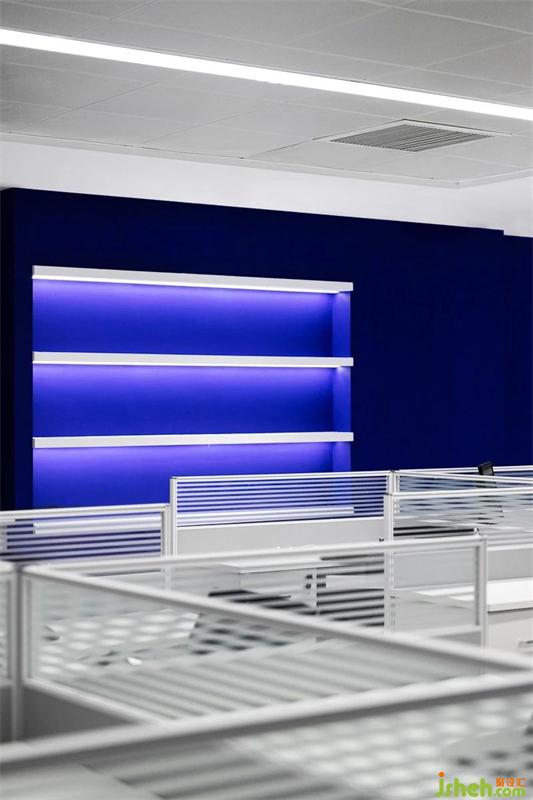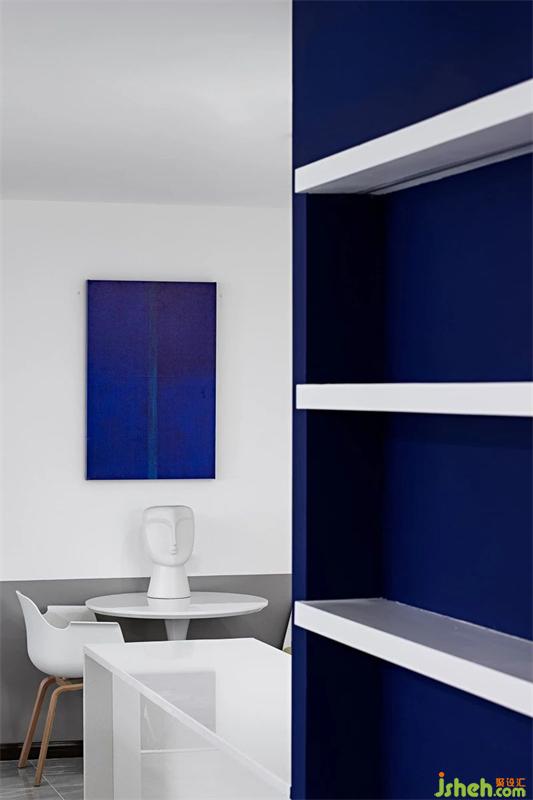 辦公區(qū)寶藍色的內(nèi)嵌展示柜