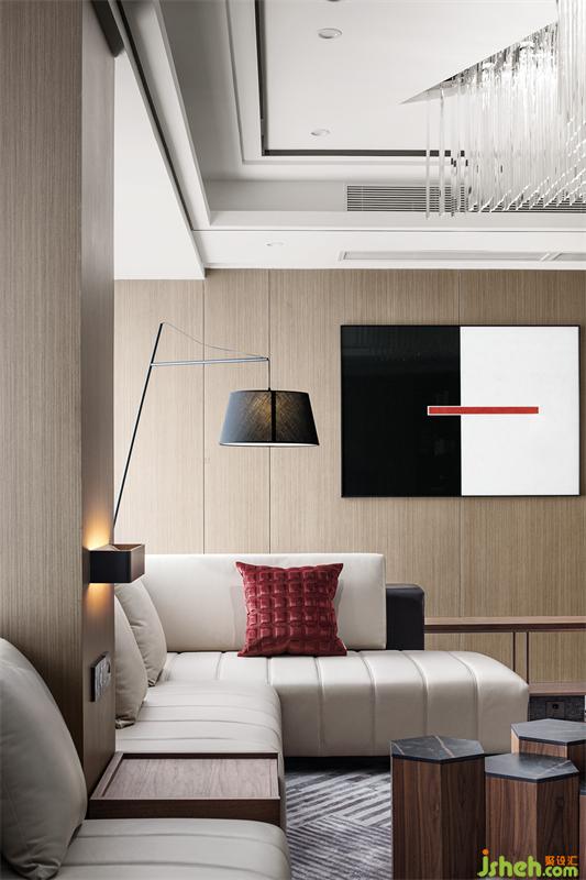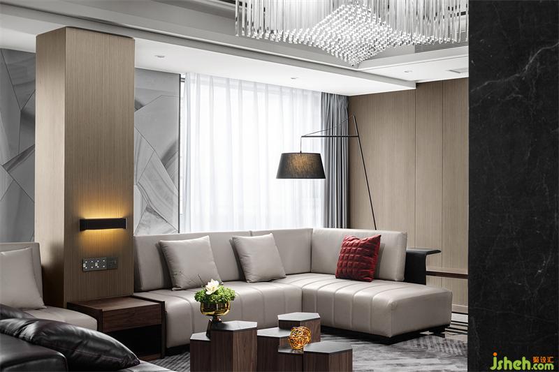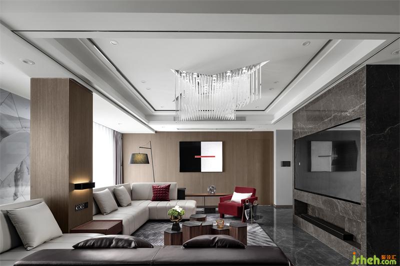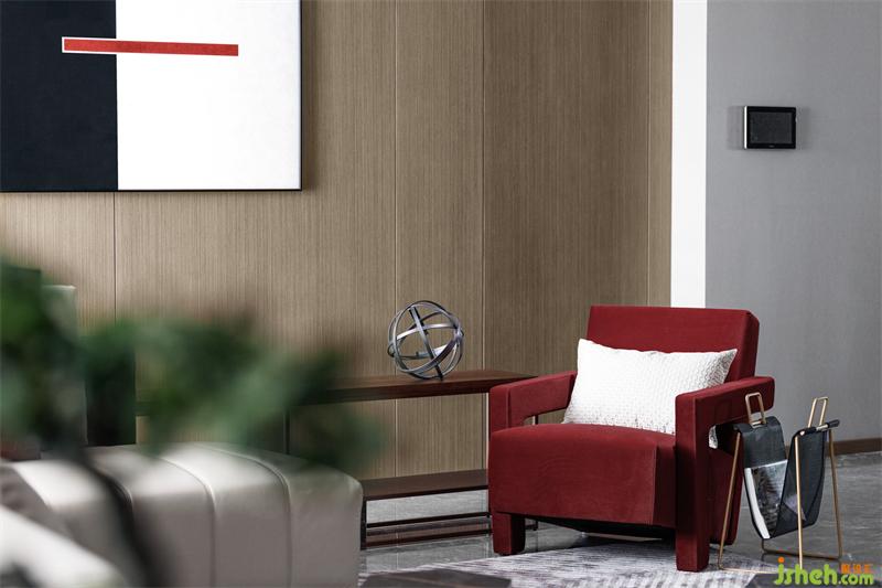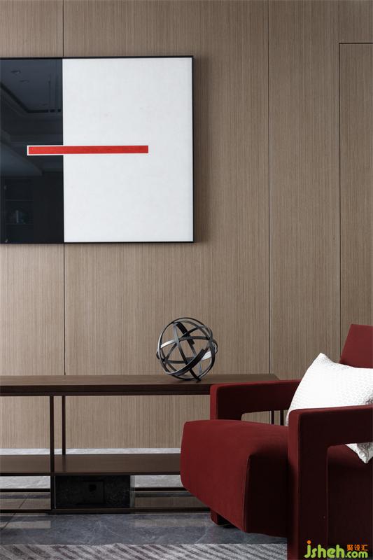 在家具選擇及硬裝的紋理質感上則選擇更貼近自然的元素進行搭配。比如大理石的電視墻,飾面板的墻面,從材質、紋理、色彩、藝術與家具的精妙組合,讓家的意境層次“和而非固,自在有趣”。