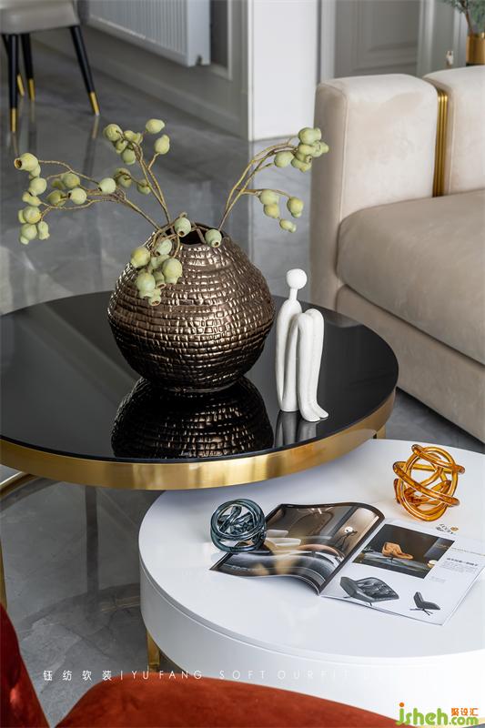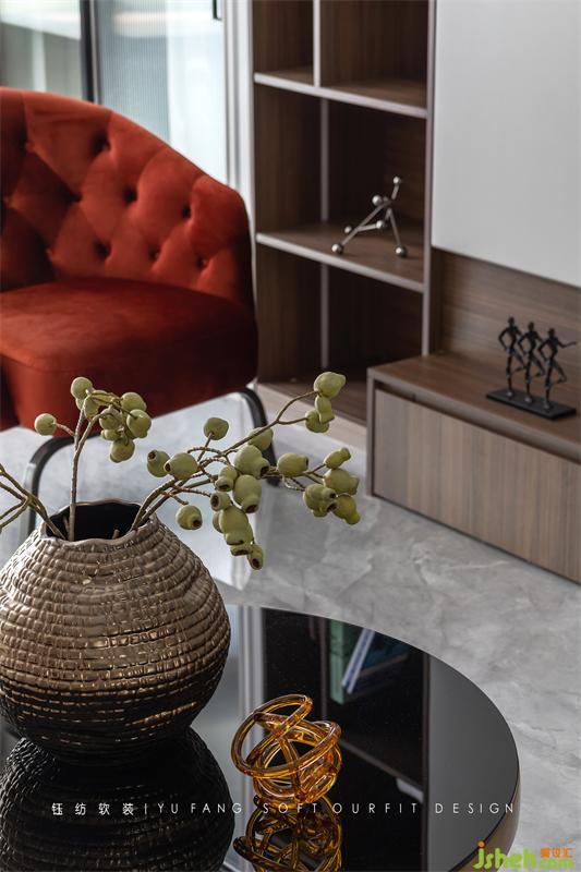 整個(gè)空間都籠罩在一種薄薄的安寧和溫馨里,活色生香的日常氣息流動(dòng)于目光所及的每個(gè)細(xì)微處。當(dāng)代藝術(shù)被融入的飾品、掛畫、家具細(xì)節(jié)等各處,通過(guò)各種樣式的組合搭配,形成強(qiáng)烈的視覺符號(hào)和空間印跡。