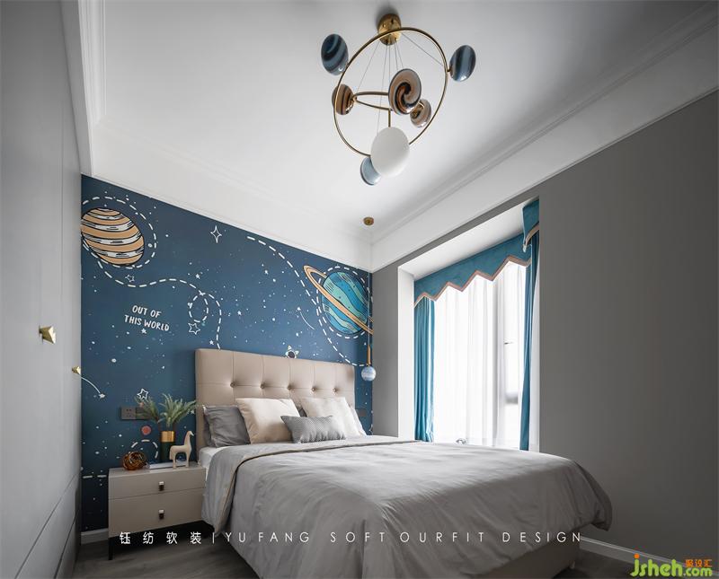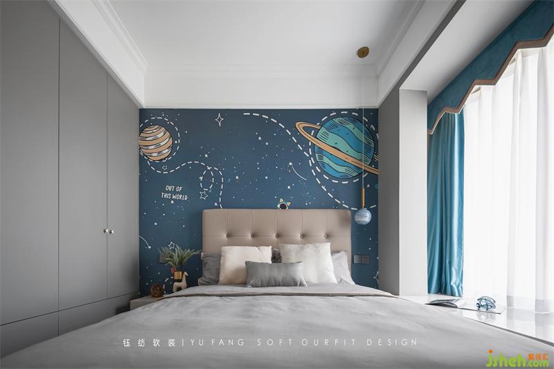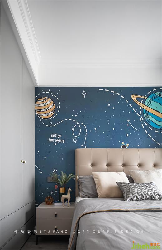 Be romantic about the universe and cherish the daily life on earth. Children room is based on blue tone to build tong qu innocent life world, let the child be in the weaving of dream of this life, describe a tong qu world with soft mood, leave a paragraph of happy time.
