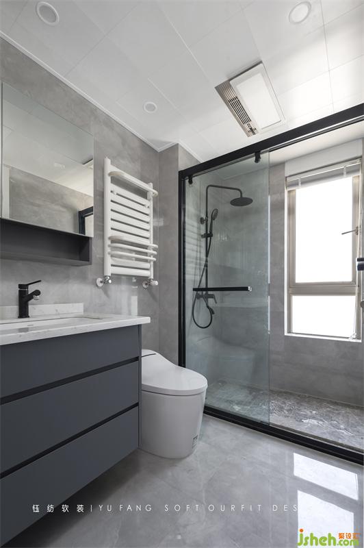 Toilet used gray big brick to collocation dark gray wash one's hands stage, let integral space more unified. At the same time, the dry and wet partitions were considered, and the niches were added for storage.