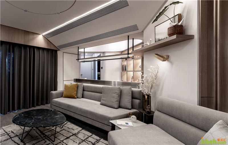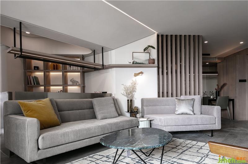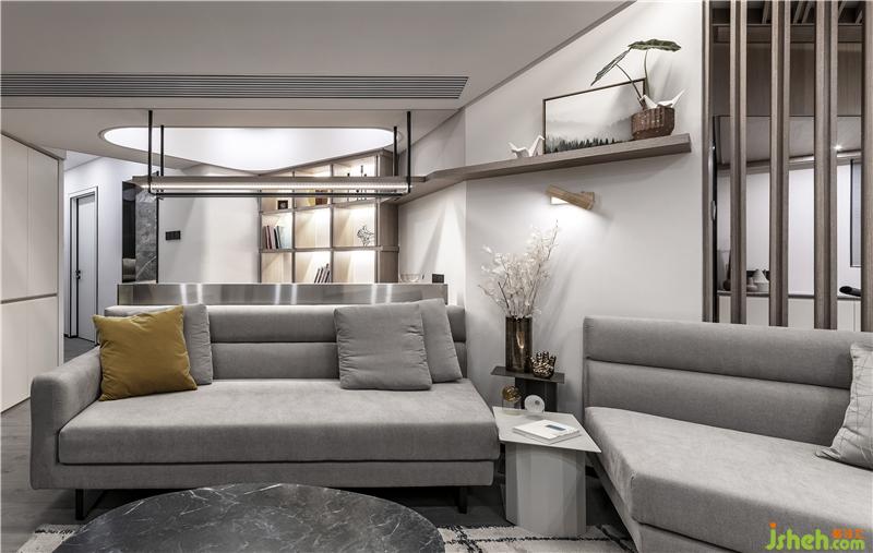 在經(jīng)過挑選,業(yè)主喜歡上這款沙發(fā),與隔斷有異曲同工之妙,隔而不斷,保持了整體統(tǒng)一性。鐵藝結(jié)構(gòu)的灰色布藝沙發(fā),灰色的抱枕搭配沙發(fā),整體統(tǒng)一又有溫暖的感覺;室內(nèi)裝修設(shè)計(jì)再搭配一兩個(gè)跳躍的亮色、黃色的抱枕形成對(duì)比,活躍空間。成品的鐵藝大理石茶幾,外觀時(shí)尚簡(jiǎn)約,與整體的氣質(zhì)十分符合。