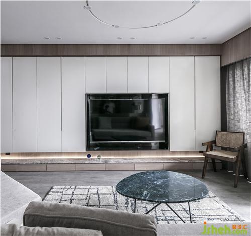 干凈利落的白色的電視背景墻,內(nèi)凹造型可以使電視機(jī)不突出與平面,下方的鏤空暗藏?zé)魩В梢宰鳛榭蛷d的展示和陳列的地方,也可擺放電視機(jī)設(shè)備。