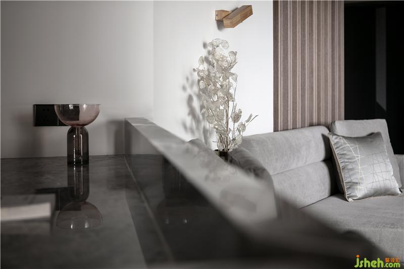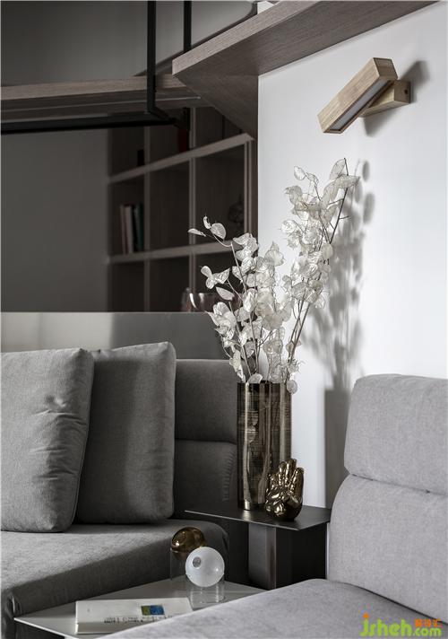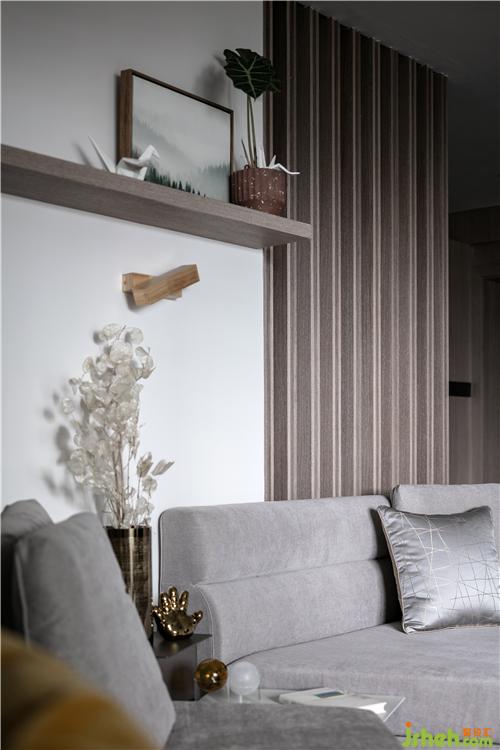 圖為沙發(fā)里的邊幾上面的小擺件、小飾品,木質(zhì)隔斷