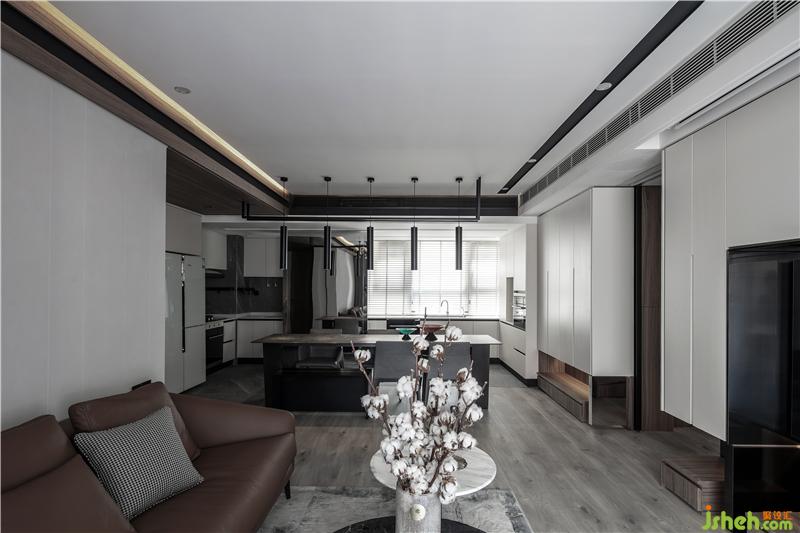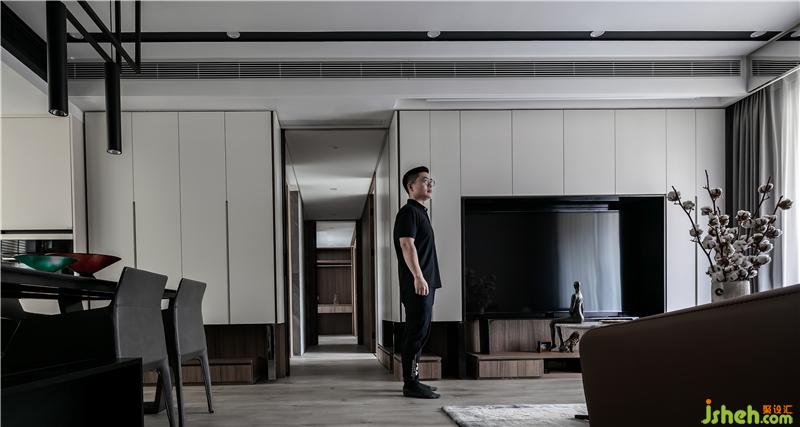 The living room and dining room are in the same space, and the middle corridor is separated. There are balconies and windows on both sides, and the ventilation environment is very good. TV background wall and restaurant background wall are a row of towering white paint board cabinet. The bottom is decorated with wood, making a row of floor drawers. Built in black steel frames surround the TV. The storage function is practical and beautiful together. The cabinets are all made by the master on site. The perfect connection with other materials also tests the craftsmanship of the master. Strive to be perfect and perfect.