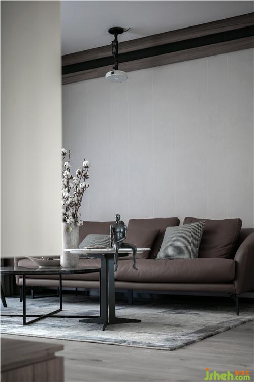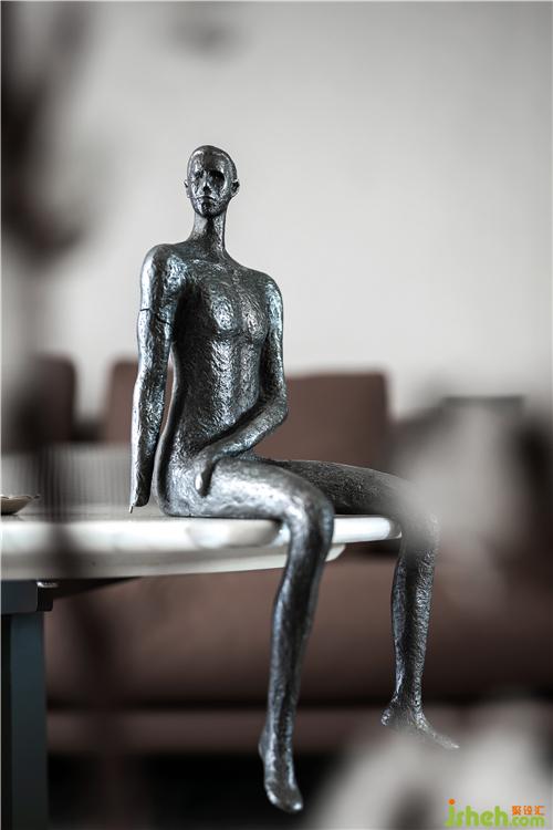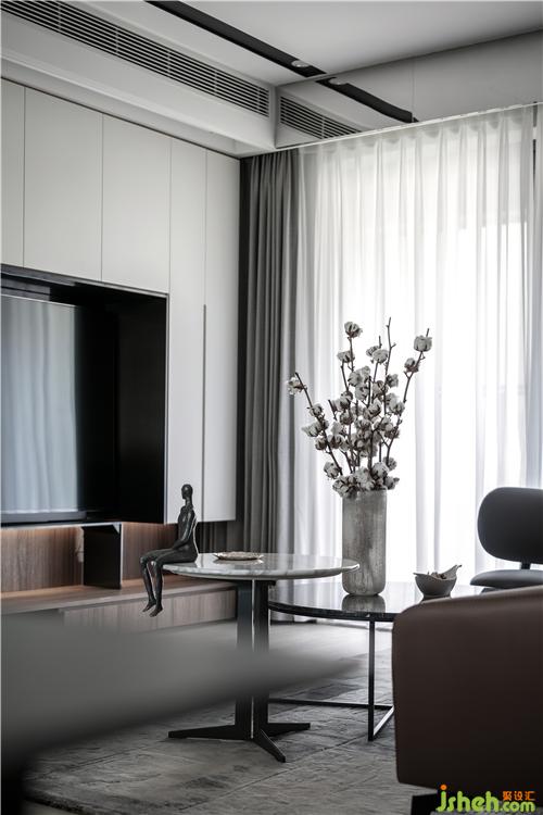 A bunch of kapok is inserted in a simple and elegant vase. The interesting black sculpture ornaments, together with the gray and white carpet with flannel texture, make the whole space more "lively".