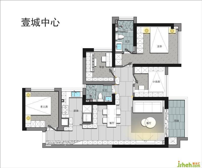 這是一個毛坯房,室內設計師在原有戶型的基礎上,結合了業(yè)主的需求對布局做了調整,以滿足業(yè)主的實際需求及實用性、美觀性。
