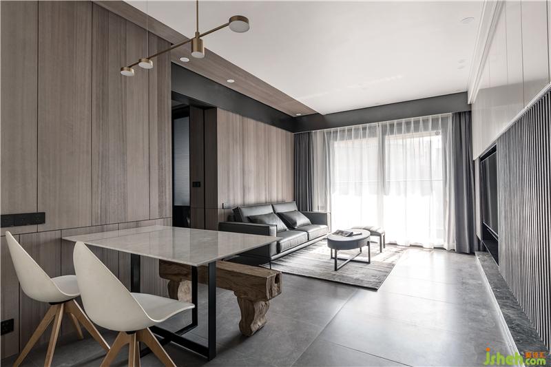 材質:木飾面、超薄筒燈、大理石餐桌、烤漆門