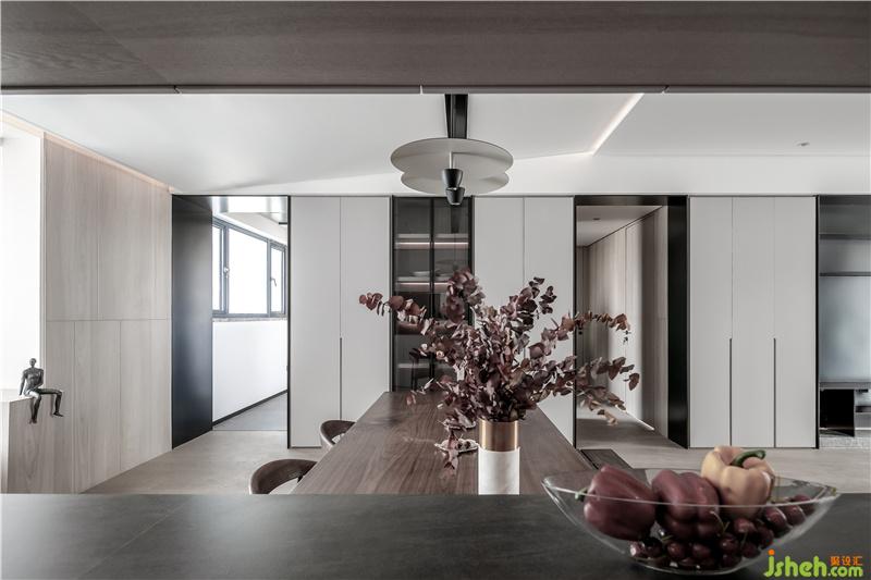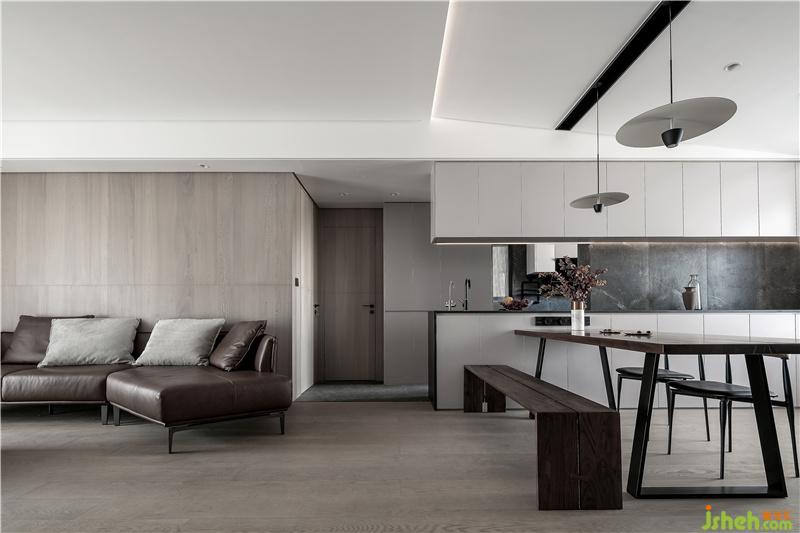 客餐廳整個(gè)空間采用的是無主燈的形式來呈現(xiàn)光源氛圍,大塊面積的白色天花增加了整個(gè)客廳的利落度,家里淡淡的木色調(diào)與環(huán)境和諧共生,營造一種愜意、簡雅的生活體驗(yàn)。