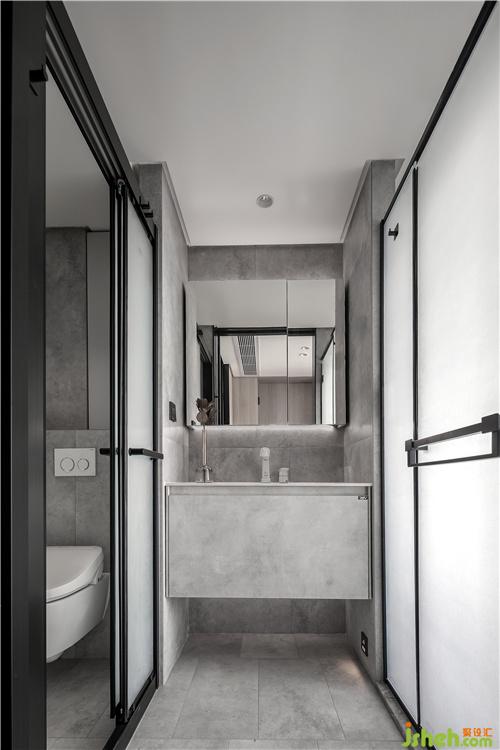 淋浴間用玻璃隔斷借用主臥光源,彌補(bǔ)了采光不足,三分離衛(wèi)生間是利用率最高的方式,同時(shí)滿足兩個(gè)人使用,室內(nèi)設(shè)計(jì)師在墻磚與天花交接的區(qū)域留20mm的工藝縫,如果直接相碰,收口會很粗糙。實(shí)際上任何兩種材料在一起搭配的時(shí)候,都要留有距離或者退位,這是中華工匠代代相傳的智慧。