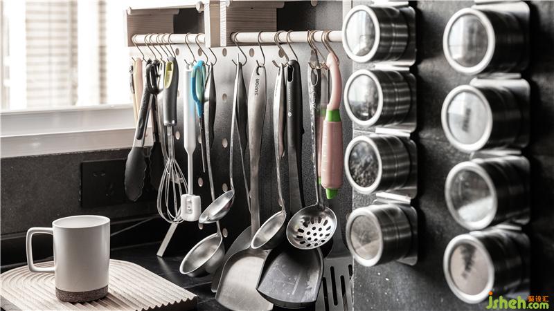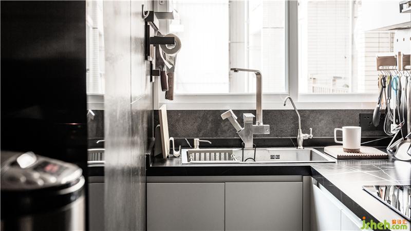 廚房石材采用同色系,室內(nèi)設(shè)計師希望硬裝的選材接近于大地色,一個家要把自然引進來,金屬、木材、石材,水、土,人可以通過接觸自然的材料而獲得能量。