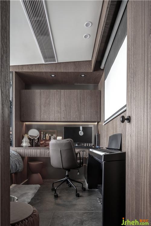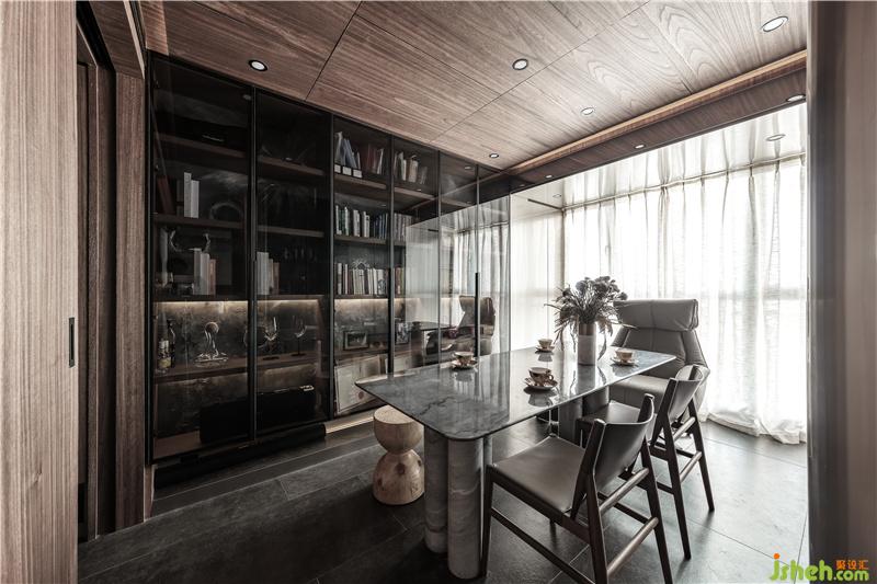 天花配以無(wú)主燈燈的形式來(lái)呈現(xiàn)照明氛圍。天花四周留20mm的工藝縫,增加天花收口的細(xì)節(jié)。