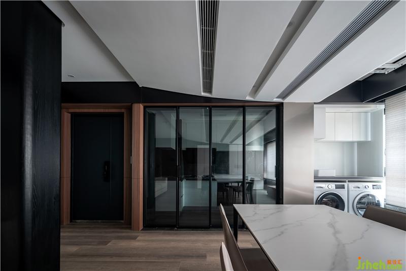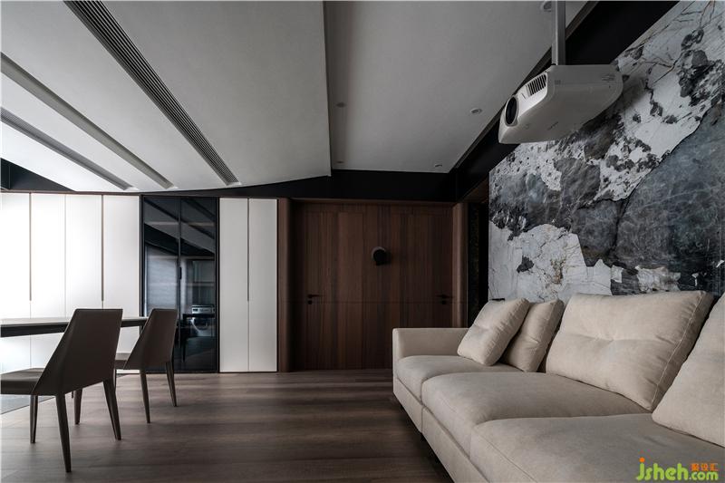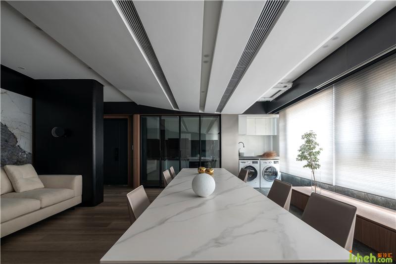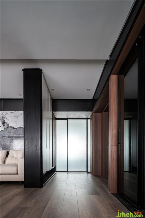 黑色木材框住白色的懸空柜