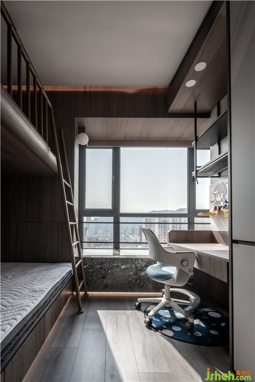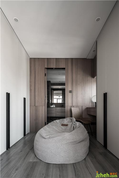 臥室兩面的儲物空間,極大滿足業(yè)主儲存需求,靠近墻邊的辦公桌嵌入頂天立地的柜子旁邊。深圳裝修設(shè)計增加實(shí)用性的同時不浪費(fèi)空間。對面的主衛(wèi)用墻面一樣顏色的木色,和墻融為一體,減少衛(wèi)生間的突兀。和空間和諧共生。