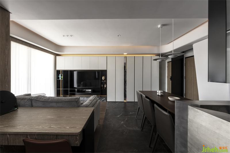 “玄關(guān)”是由戶外入戶的過渡專用空間,家居設(shè)計整體效果以現(xiàn)代風(fēng)格呈現(xiàn)典雅而不失活力個性十足,玄關(guān)處的大廳鋪著以黑為主色調(diào)白色紋路加以點(diǎn)綴的大理石地磚。