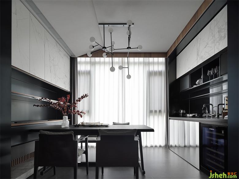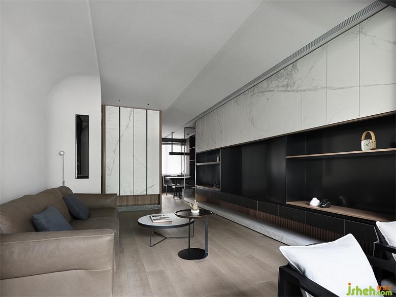 木子仁設(shè)計(jì)源于生活,它是具象功能的外在顯露,更是精神世界的向內(nèi)探索。斜面的天花為切入,沙發(fā)背景弧面設(shè)計(jì)溫馨簡(jiǎn)潔,光、材質(zhì)、氛圍的碰撞,讓人與居住自然融為一體,純白緩解了木的陰翳,和明亮的光線和諧共存,以視覺以緩沖。大面的落地玻璃,完成了視覺最大限度的延伸,遠(yuǎn)處天邊的白,室外高樓林立的風(fēng)景和深淺不同季節(jié)的緑,入畫呈現(xiàn)一面流動(dòng)的風(fēng)景。