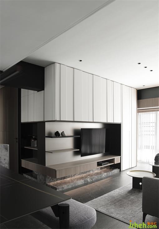 客廳與廚房沒有間隔,餐廳區(qū)的灰白色調,電視背景深淺錯落的烤漆柜門增加藝術感,自然的木飾面色調穿插金屬元素的植入畫龍點睛,木子仁設計深淺的對比點到為止,輪廓線條簡潔明快,彼此形象獨立卻又功能互通,對于在節(jié)奏快速的深圳居者,外部環(huán)境和內部環(huán)境的分離,才能帶來安定的感覺和有溫度的世界。