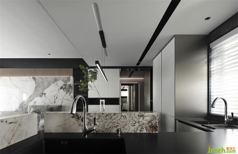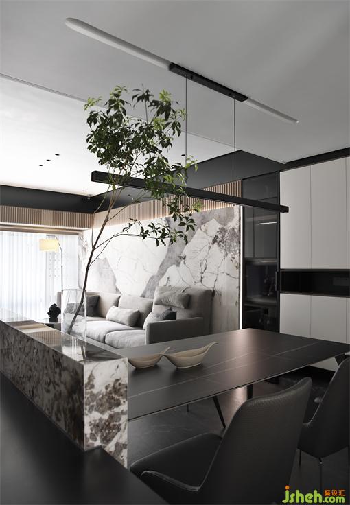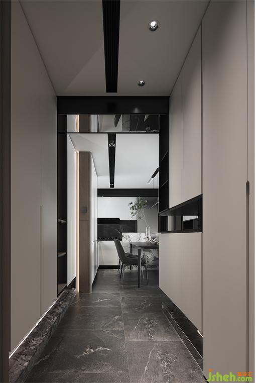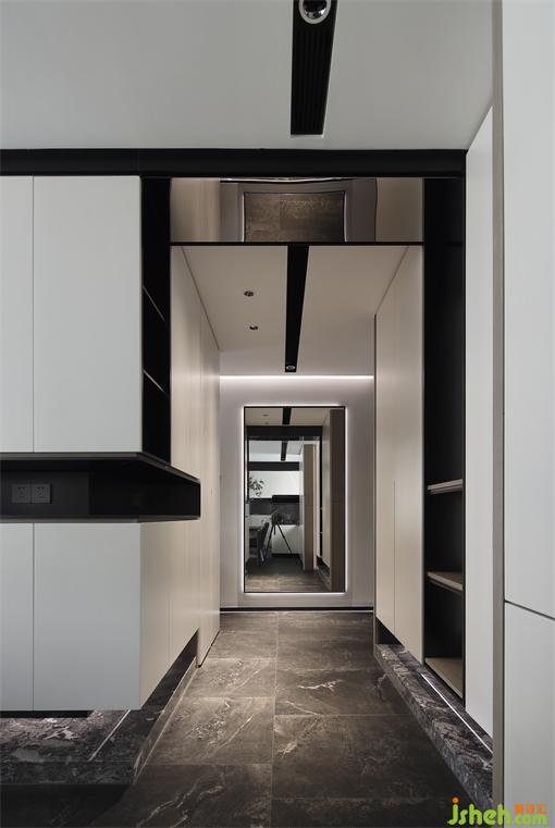 玄關將室外的車水馬龍隔之門外,遠離繁華的喧囂,卸下身心疲憊,喜歡簡單的生活,自然的巖板感受時光的斑駁,木子仁設計搭配原始溫潤的木飾面產生優(yōu)美的肌理,溫和的線條燈是生活溫柔揮灑。設計者考慮外觀美感的同時,功能也參與其中。簡約帶著靈動。