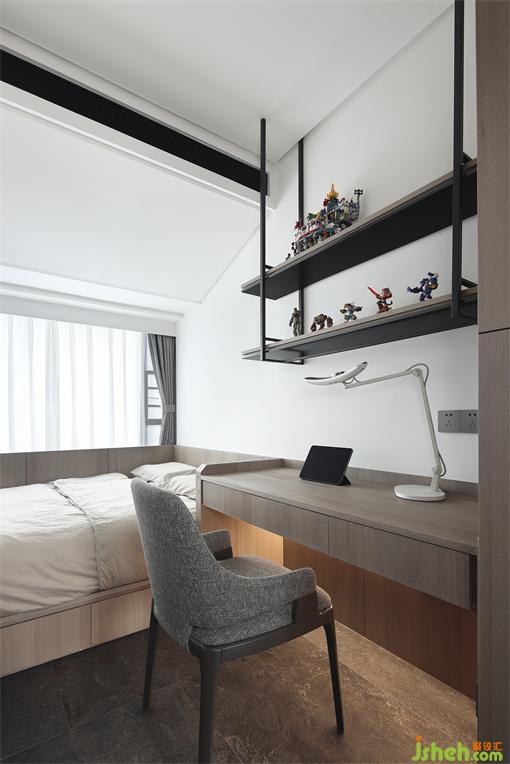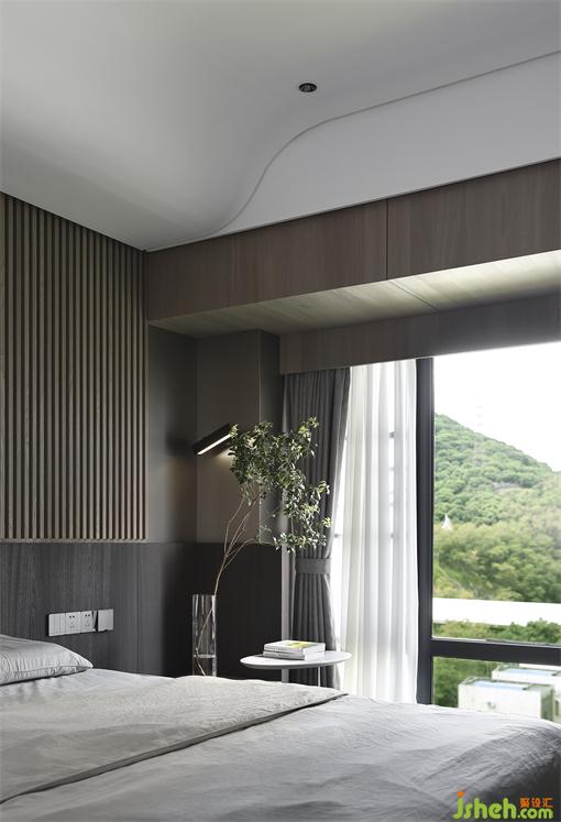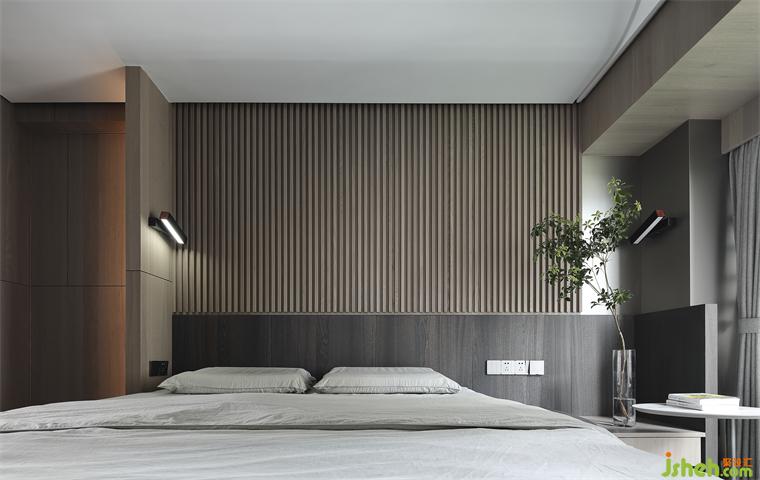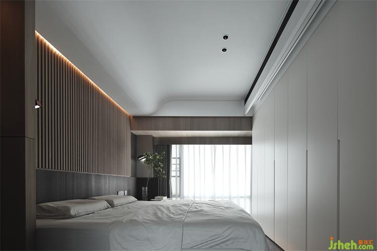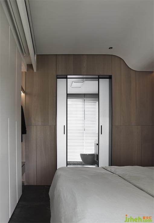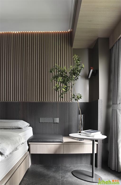 主人房的設(shè)計(jì),很大程度上決定了生活的品質(zhì)。木子仁設(shè)計(jì)床頭背景木質(zhì)格柵靜謐安全的大自然紋理材質(zhì),睡眠區(qū)呈現(xiàn)沉穩(wěn)安靜的極簡藝術(shù)感,天花弧面讓設(shè)計(jì)變得柔和舒適,石材的地面鋪設(shè)方式保持了空間一致性,隱藏的投影幕布在柜子上的天花之內(nèi),簡潔利落。尺度舒適,觸目所及之處皆臻品,提升空間品質(zhì),讓時(shí)間緩緩流逝,愛意保留。
