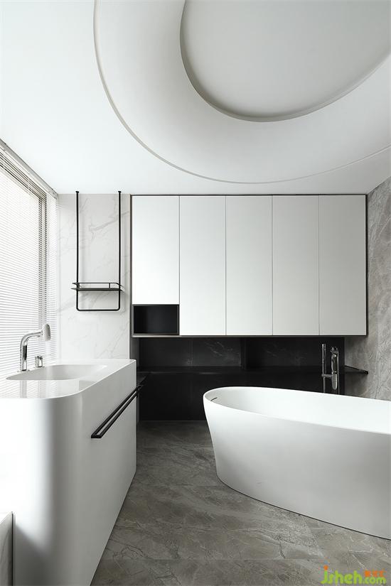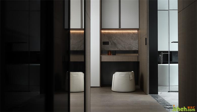 主衛(wèi)游離于自然介質(zhì)之上的弧形天花,構(gòu)造一種洞穴的有機感,充滿趣味性的水龍頭和洗手臺與天花構(gòu)造形成一種藝術(shù)的聯(lián)動,漂浮的大理石圓幾豐盈了客廳的時間感,家裝設(shè)計將質(zhì)樸的寧靜與時間消逝的美留存于空間,通過設(shè)計營造舒適安心的自然氛圍。