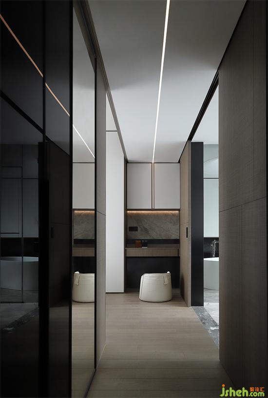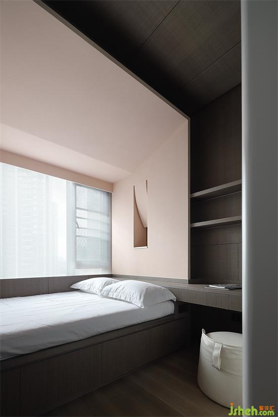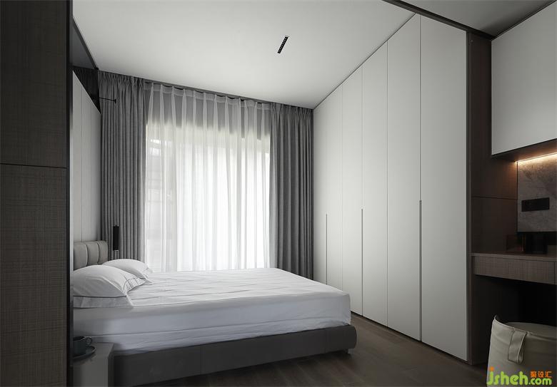 天然紋理與低調(diào)深色由外蔓延至臥室,令原有的平和氣息繼續(xù)為睡眠環(huán)境服務(wù),釋放單層疊加結(jié)構(gòu)的簡約風尚,導引居住者自然靠近床榻,家裝設(shè)計搭配星芒一般的光源,促使空間氛圍向寂靜之域沉淀,讓安全感與舒適感貫穿起居場景。