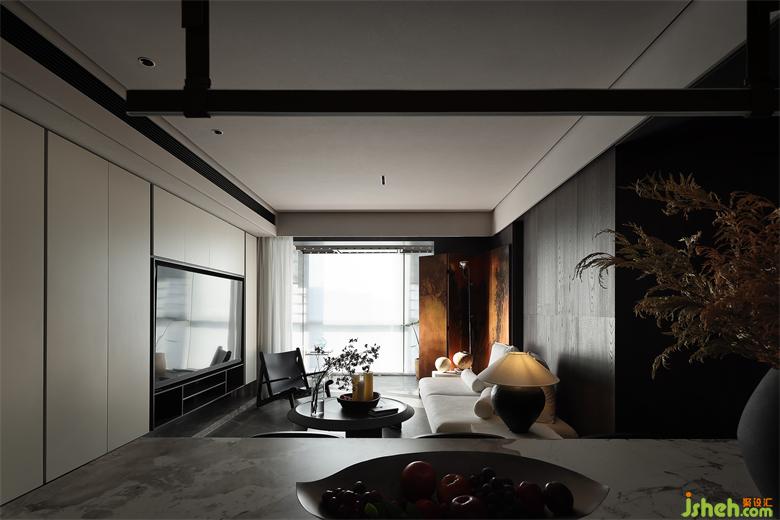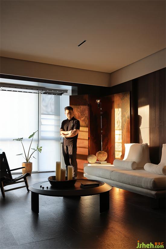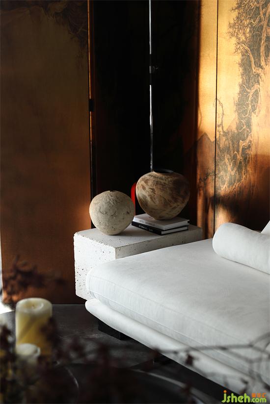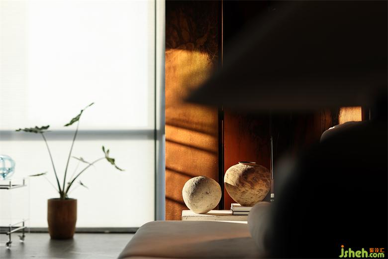 沙發(fā)背景墻是暗色的木,下午溫暖的陽光透過窗戶,洋洋灑灑,讓墻面有了溫和的質(zhì)地。家裝設(shè)計水墨畫的屏風(fēng)經(jīng)夕陽的余暉有了不一樣的感官平衡,在整個暗色空間有些許的暖。賦予了城市冷漠表象下溫柔內(nèi)心的完美詮釋。