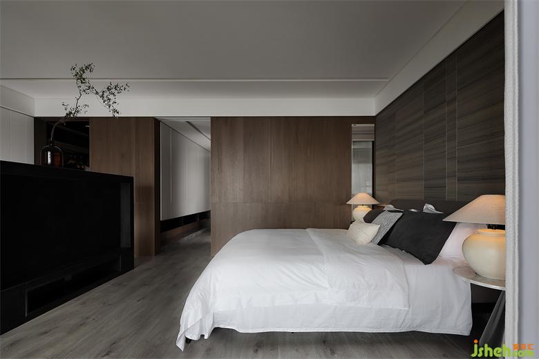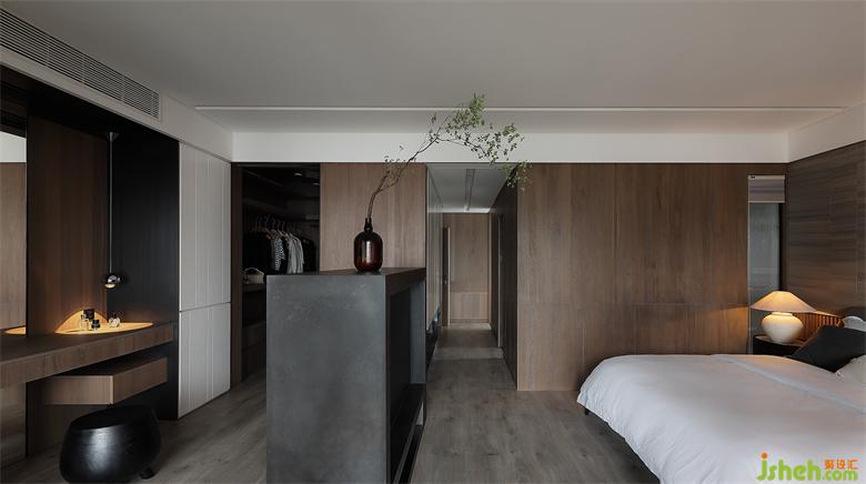 主臥滿足衣帽間、書房、睡眠區(qū)、衛(wèi)生間一體的套房需求,在尺度中把握功能與功能之間的平衡。然后封掉主臥與陽臺的出入動線,改從書房進出,與公共區(qū)形成一條有趣的洄游動線。同時也加強主臥睡眠區(qū)的隱私性,能在工作后可以直徑走入陽臺散步,放松緊繃的疲累精神。