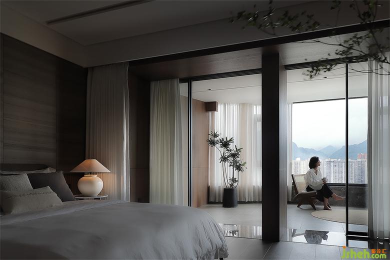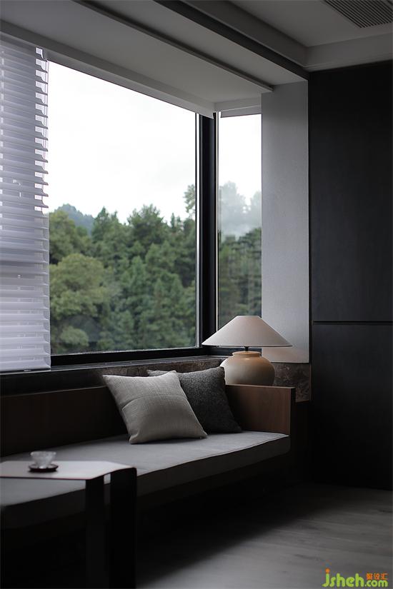 重視內(nèi)在的包容與聚力,延續(xù)外部黃楊木包裹床頭,灰綠與其融合再加入外部的自然景觀,像是被提純過的森林景象,讓人感覺舒心、寧靜。