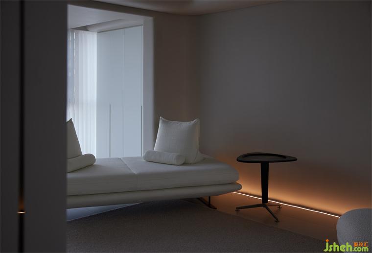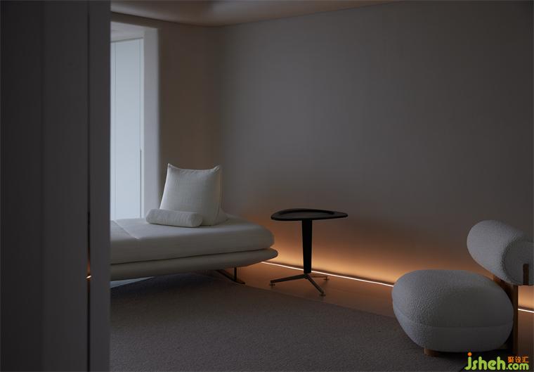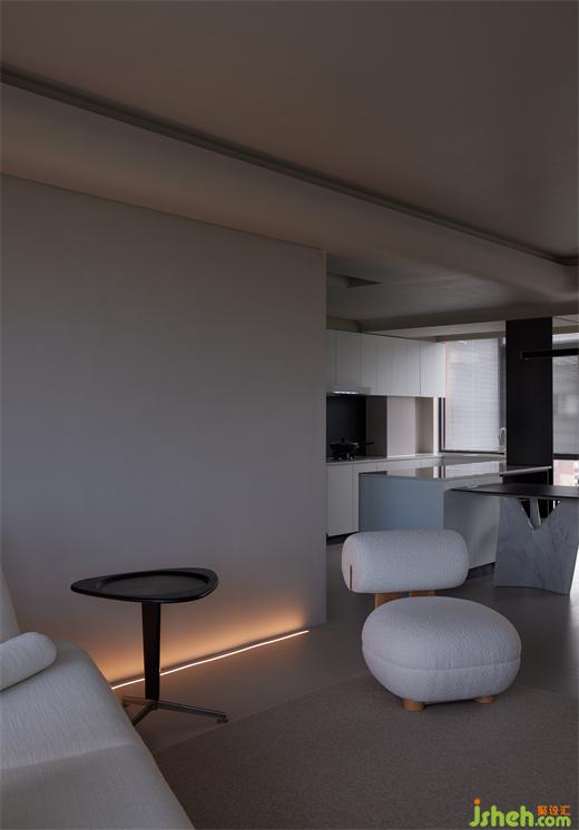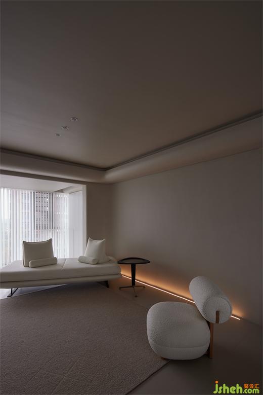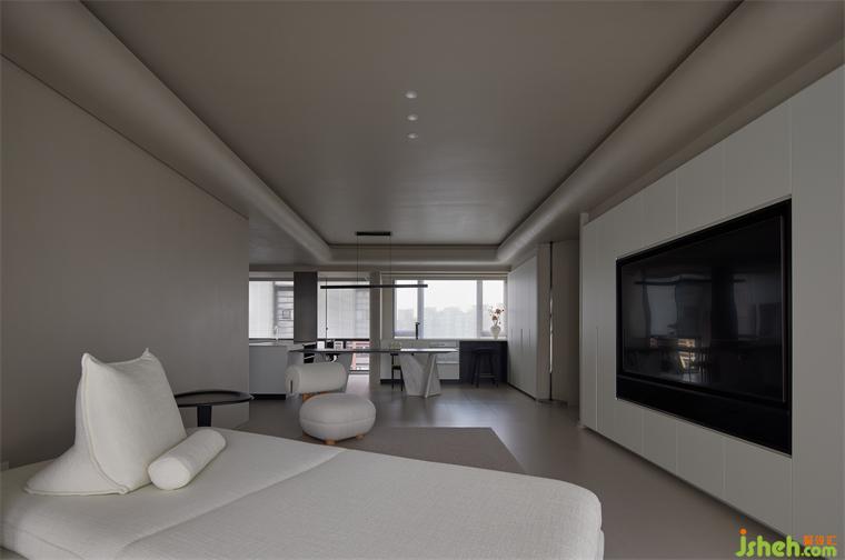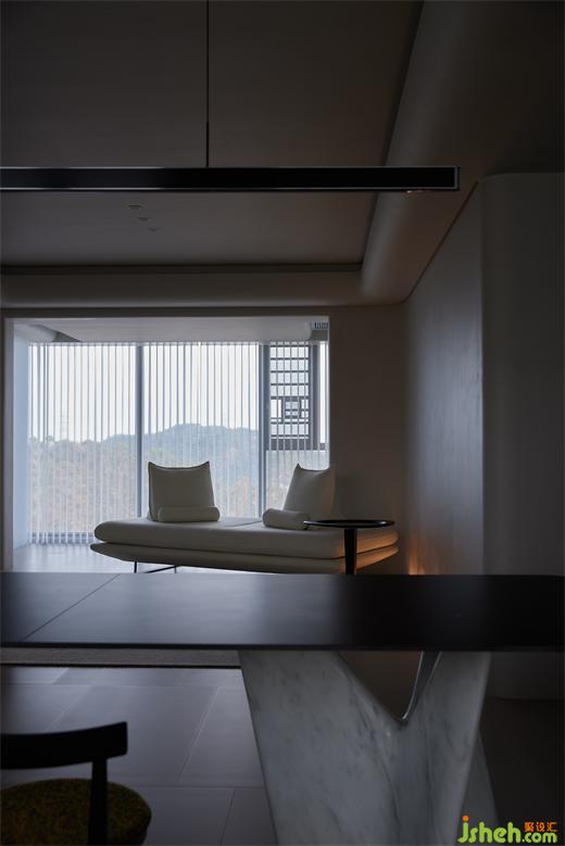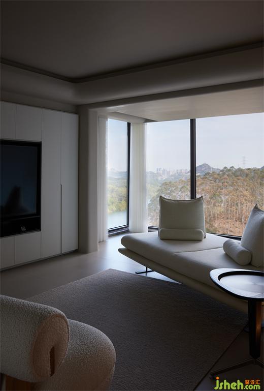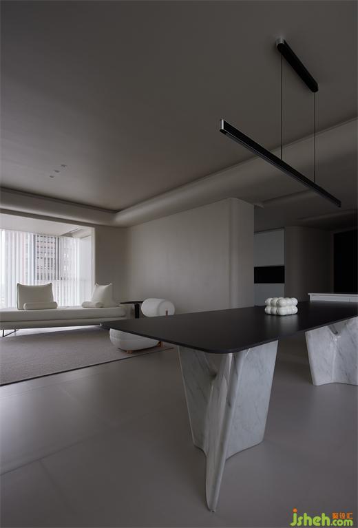 對一眼看到的視覺空間作重新梳理,去掉華而不實的裝飾,摒棄繁雜的圖像,使用簡潔的顏色和線條,去繁化簡,豪宅設(shè)計沒有多重材料的堆砌——在理性邏輯下的減法加持后,家空間成為了主人生活的空白畫布,空間也有了被收納的可能。這樣一來,目之所及,居室環(huán)境依然整體留白,窗外透入的自然景致也不會被室內(nèi)多余線條打碎,得以完整進(jìn)入室內(nèi)。