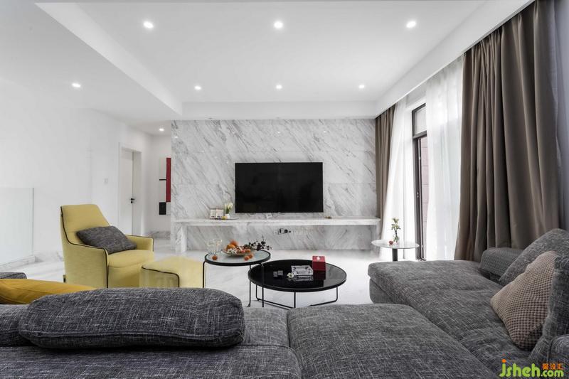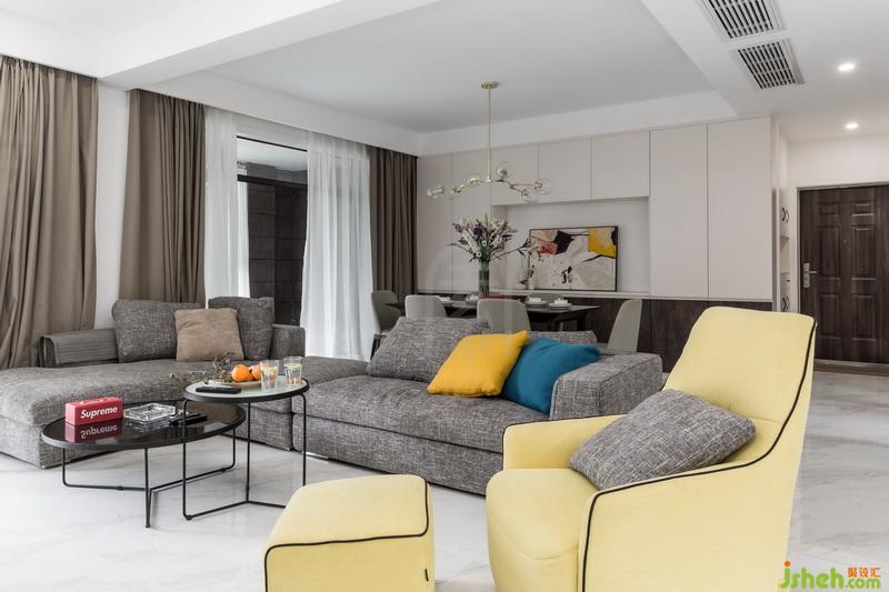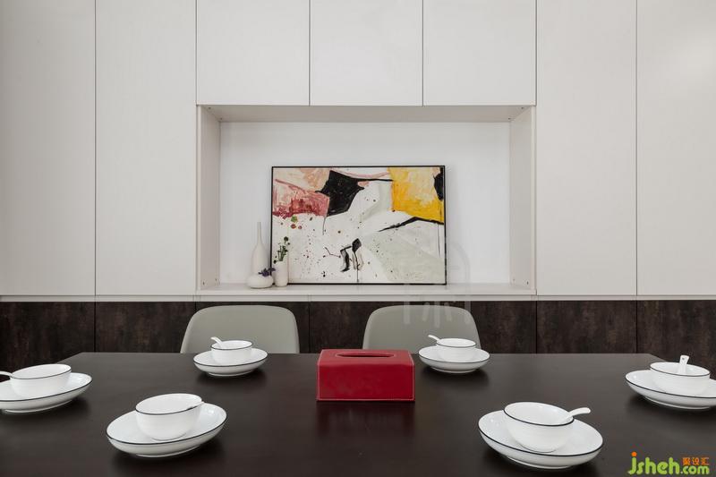本案沒(méi)有增加過(guò)多的裝飾,室內(nèi)設(shè)計(jì)師保證居住者的基活習(xí)慣,以實(shí)用性為主。主色調(diào)用黑白灰呈現(xiàn),加入部分色彩和幾何元素點(diǎn)綴空間。