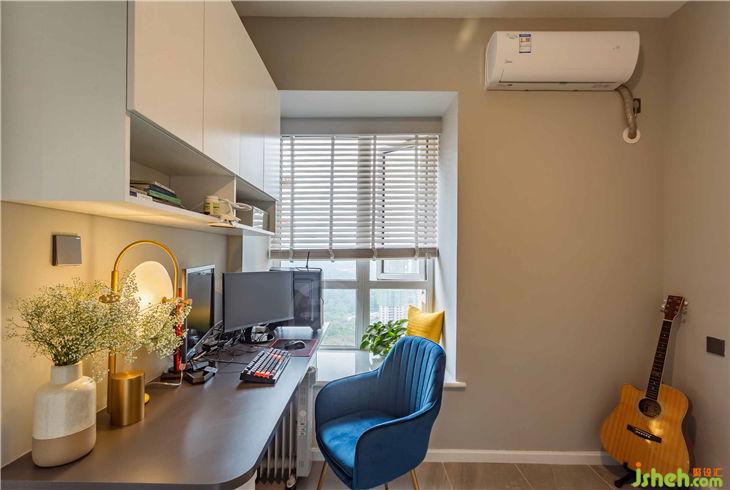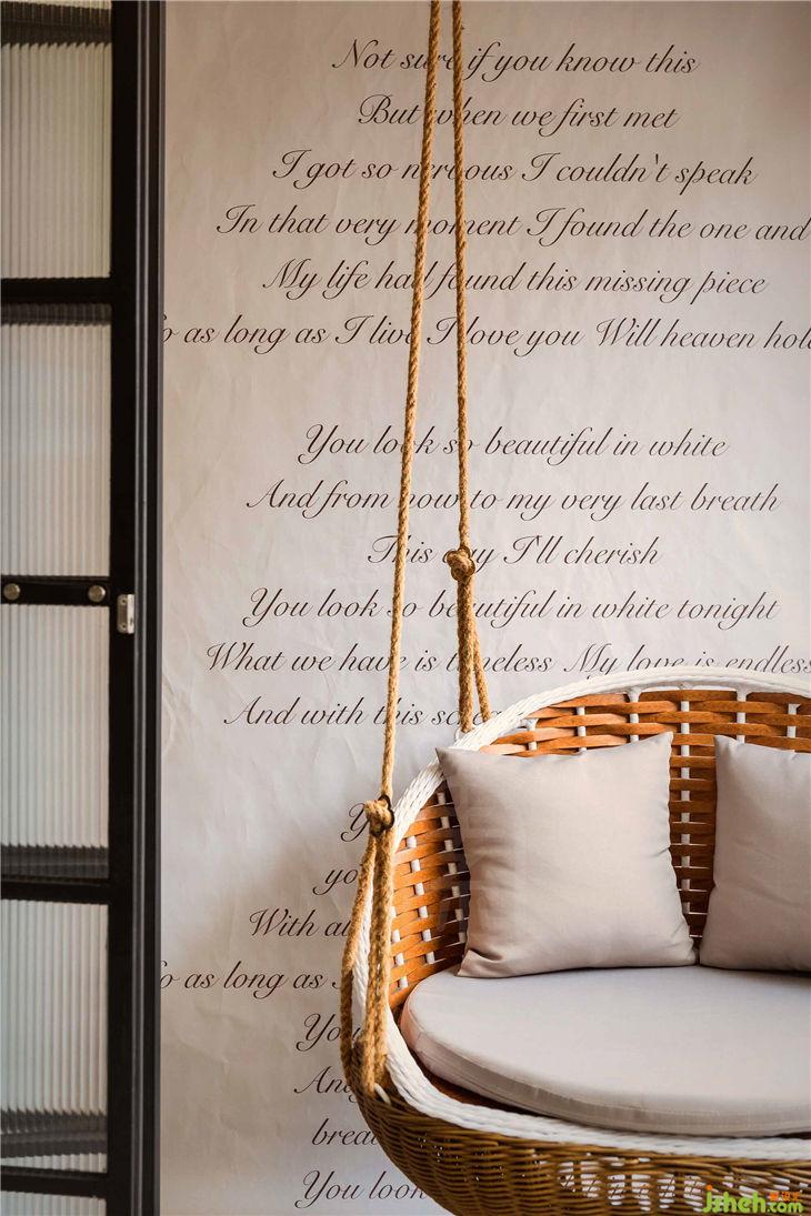 在我眼里的她,是一位性格急躁但內(nèi)心柔軟的工作狂。外表的雷厲風(fēng)行讓很多人不敢靠近,可是久處之后,卻不難發(fā)現(xiàn)她的內(nèi)心,既是調(diào)皮的,更是可愛的。她很忙,忙到每次方案的溝通,要靠好不容易的時(shí)間壓榨,才有機(jī)會碰上ー面。這幾日,在海上沒有信號的日子讓人暫時(shí)放下手機(jī),靠在椅子上,看落日斜暉,看海鳥余光。那夾雜著成腥味的海風(fēng),吹拂到臉上,伴著平靜的海面,我突然發(fā)現(xiàn),這不就是生活嗎。柴米油鹽,平淡如水,能夠讓人靜下來的日子,永遠(yuǎn)不會讓人覺得燥熱,而這也是本次作品,我想要傳達(dá)的深意。對于設(shè)計(jì)方案,我想做一個俏皮的混搭,既給到她辦公所需要的空間,又給她可以獨(dú)自發(fā)呆的角落。房子的優(yōu)勢是陽臺正對小區(qū)中央,正前方?jīng)]有任何遮擋,視野極其寬闊,這也正是可以獨(dú)自發(fā)呆的角落,坐在吊椅里,感受時(shí)間的流逝,和愛人一起放空,品味生活.房子面積并不大,但想將視覺空間擴(kuò)大,于是將廚房多余的墻面拆掉,安上玻璃,也將光線引入室內(nèi)。