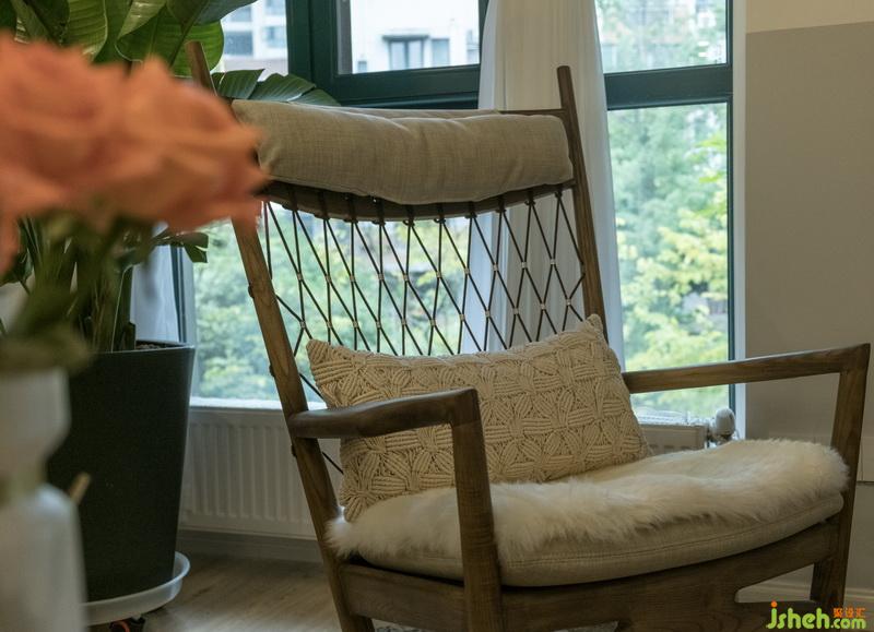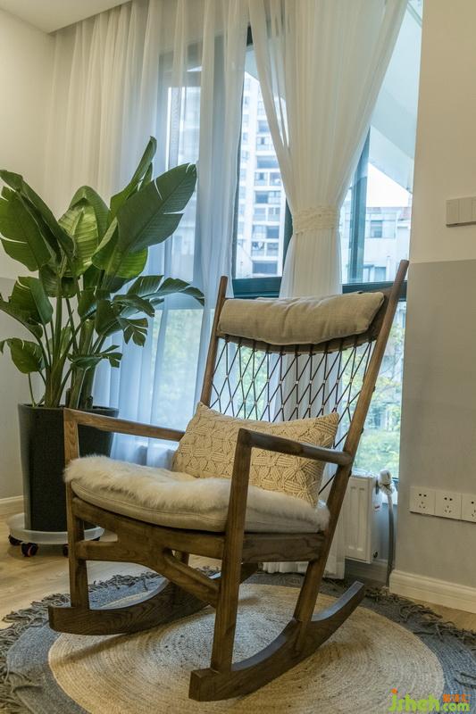客廳不大,也沒有做太大的變化,墻面采用的半墻處理,太滿則溢,過猶不及。上淺下深的半墻設(shè)計(jì),加深了墻面的層次感,同時(shí)也能拔高空間的層高。恰到好處的為單調(diào)的白墻注入了一絲新鮮的活力,不顯壓抑,卻又很大氣。在角落擺放旅人蕉,讓整個(gè)空間也充滿了生氣。能想象出,若周叔叔在沙發(fā)上看電視時(shí),偷偷注視著在搖搖椅上看書的熊阿姨,而此時(shí)熊阿姨也注意到有人盯著她看,便抬頭相望,卻剛好與周叔叔四目相對(duì),二人微微一笑的場景。